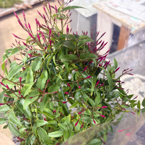 羽衣ジャスミンは鉢物としての販売だけでなく、アレンジ素材としても活用できる万能アイテムです。つるのラインを活かしてナチュラルテイストのアレンジメントや、ウェディングやディスプレイ装飾などに組み込むことで、動きをプラスできます。