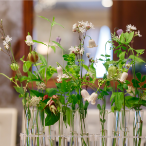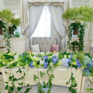 ホテルやゲストハウスでのブライダル装花をはじめ、会場全体の空間演出から新婦様の想いを形にしたブーケまで幅広く手がけてきました。季節ごとの花材や色合わせにこだわり、ひとつひとつの結婚式のテーマやストーリーに寄り添った提案を大切にしています。高砂やメインテーブル、ゲスト卓装花はもちろん、ナチュラルからクラシカルまで会場の雰囲気に合わせた装飾が可能です。ブーケはドレスとの相性や持ったときの美しさまで考え、特別な一日をより印象的に彩ります。