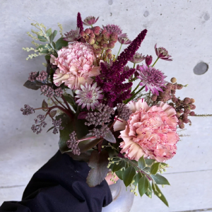その時期ならではの花材を主役に、季節感をたっぷり詰め込んだ花束です。春は軽やかで明るく、夏は瑞々しく爽やかに、秋は深みのある色合いで、冬は凛とした華やかさを。市場での目利きを活かし、状態の良い旬の花を厳選。日常の贈り物からちょっとしたご褒美まで、暮らしに自然と寄り添うデザインを大切にしています。店頭販売や小売りにつきましては、花政・マオフラワー三室にて承っております。